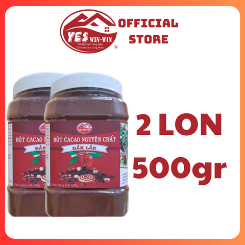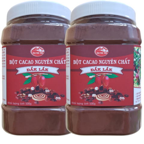 1kg Bột Cacao Nguyên Chất từ Đắk Lắk - 2 lon 500g Hương vị Thơm Ngon Đậm Đà Không Đường - Yeswinwin