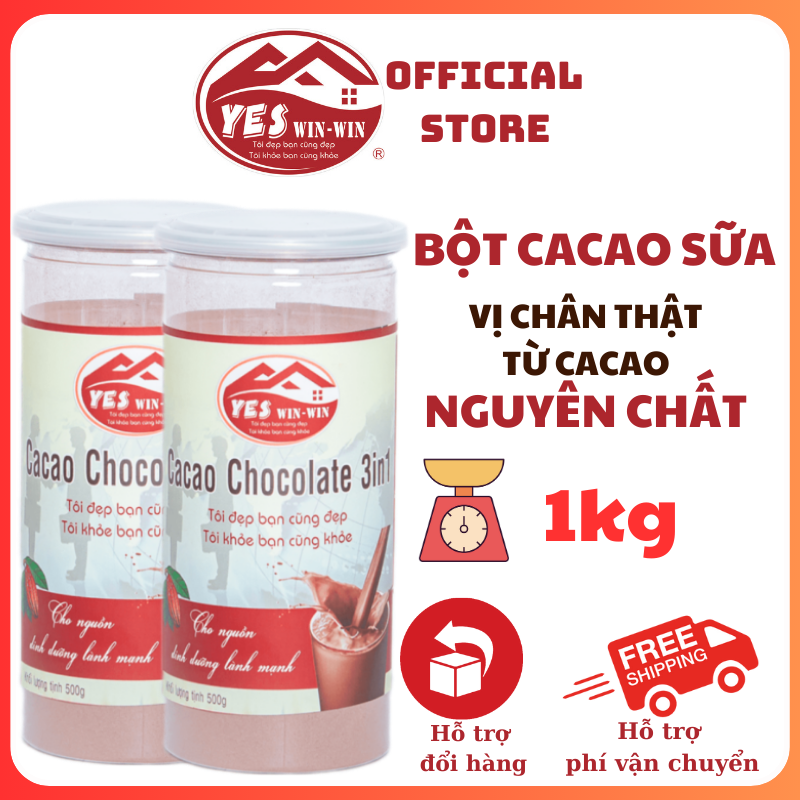 1kg Bột Cacao Sữa Yeswinwin - Đậm Vị Chân Thật Từ Cacao Nguyên Chất - 2 lon x 500gr - Yeswinwin