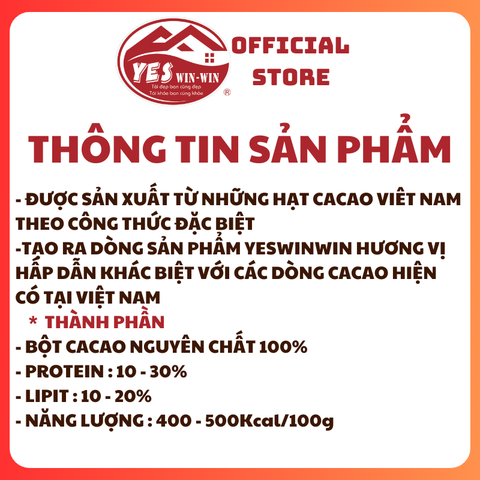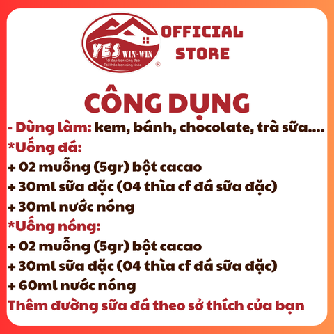- Bột cacao nguyên chất được chọn theo các hạt theo chuẩn UTZ, bột cacao nguyên chât Cacao YESwinwin được dùng nhiều trong đồ uống take away các loại.